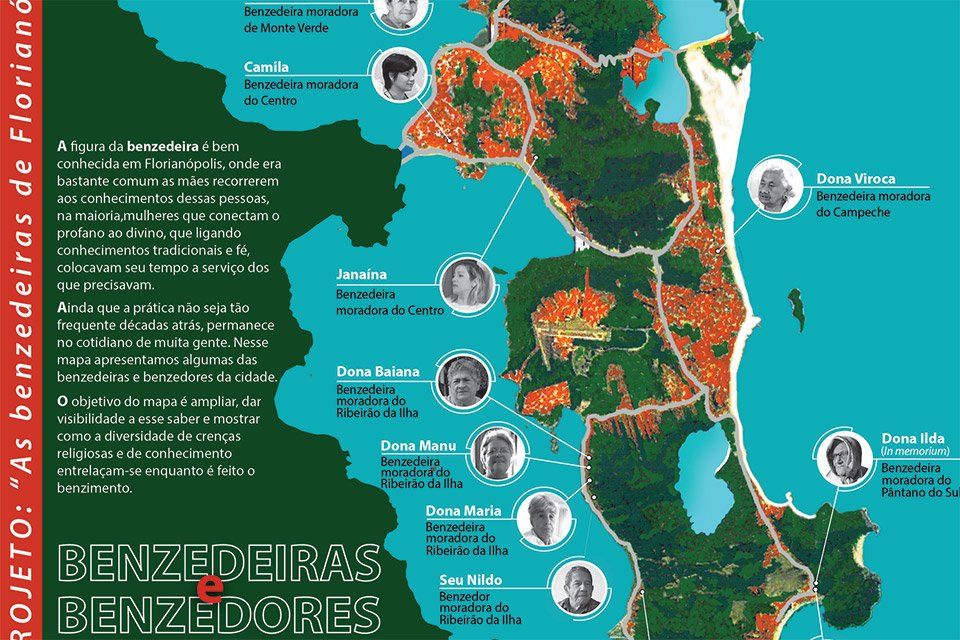 Projeto gráfico. Mapa para o projeto Benzedeiras de Florianópolis. Espaço Arqueologia.