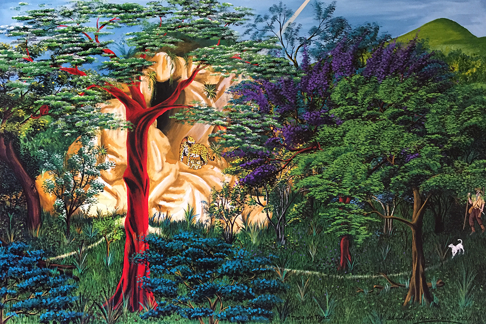 A pintura "Toca da Tigra" é uma encomenda e ilustra o encontro de Jacinto Inácio com uma onça e seus filhotes em terras onde seria a futura cidade de Santana da Boa Vista no Rio Grande do Sul. Homem de posses, dono de sesmaria na região e pessoa de projeção em seu meio, sofreu durante uma caçada, um ataque de uma onça pintada, conhecida no município como Tigra, ferindo-se gravemente, no ano de 1821. Religioso, invocou o nome de Nossa Senhora de Santa Ana, apelando por salvação. Como, por fim, conseguiu abater a fera com uma faca, mandou que fosse erguida uma capelinha de sape, em agradecimento à Santa e doou parte de suas terras para a construção de um vilarejo o qual tornou-se a cidade de Santana da Boa Vista.