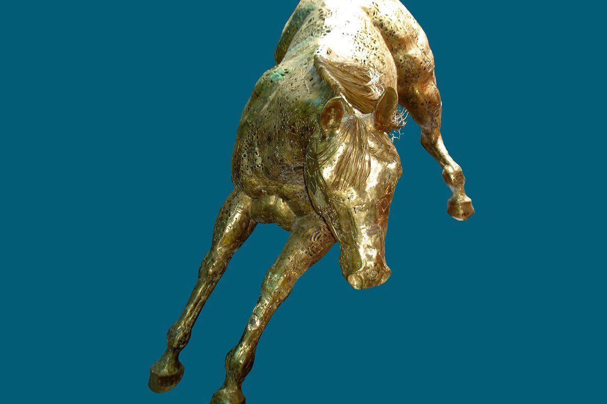Encomenda solicitada de cavalo Quarto de Milha em posição de " apartação do gado" . A escultura deveria ser em dimensões reais e construída em bronze. Sugeriu-se que fosse, ao invés de bronze fundido, de retalhos de bronze soldados. A sugestão foi aceita e realizada.