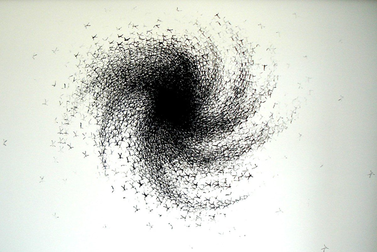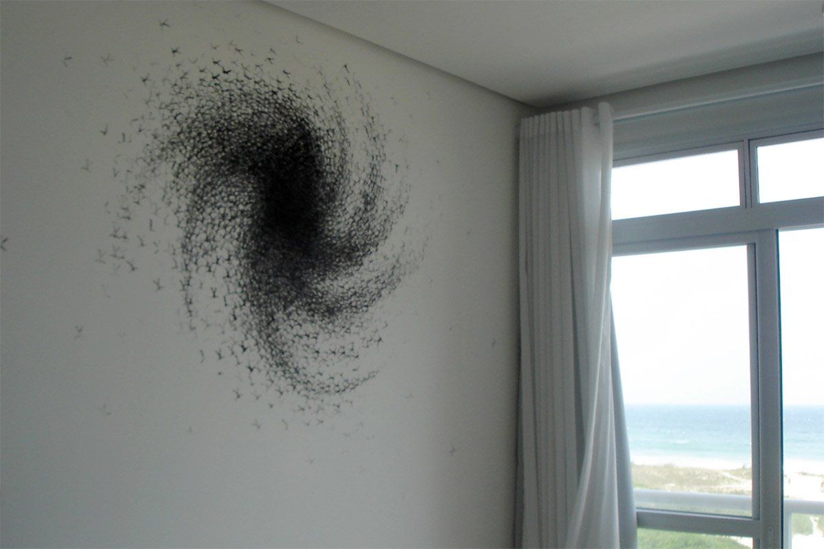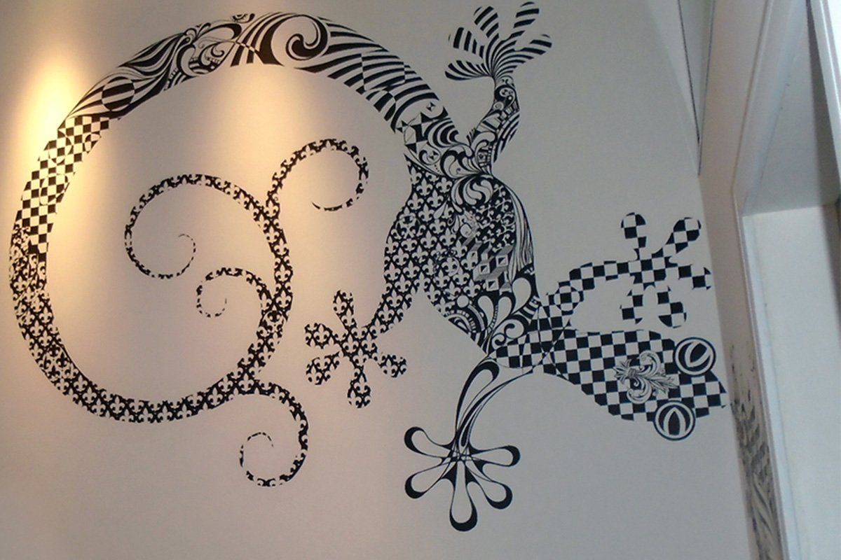 Desenho com grandes dimensões executado com caneta POSCA para salão interno residencial.